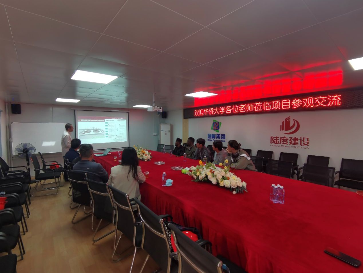 座谈会上,福建陆度建设有限公司副总工程师魏永伟对党支部一行表示欢迎,并介绍了公司的发展历程以及嘉丽广场项目施工方面的难点及创新点,并表达了对土木专业人才特别是有中国教育背景的海外人才的需求。