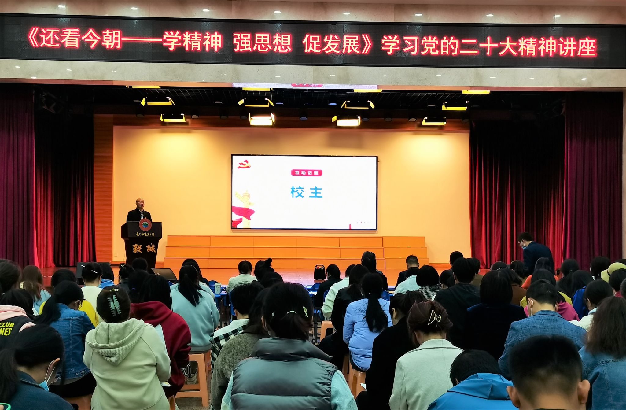 张灯首先解读了党的二十大报告和会议精神,用数字导读的方式,从一个主题和中心任务、“两步走”战略安排,到“三个务必”、“四好青年”,再到五个“必由之路”、六个“必须坚持”,最后到十二个“强国”,全面生动地解读了党的二十大报告。他强调,过去五年和新时代十年所取得的巨大成就,充分证明了马克思主义行、中国化时代化的马克思主义行,我们要对坚定走中国特色社会主义道路充满信心。张灯引经据典,用生动的历史故事、详实的图片数据,讲述了坚持自我革命和坚定不移推进全面从严治党的重要性。张灯寄语大家深刻领悟“两个确立”的决定性意义,学习好、宣传好、贯彻好党的二十大精神,不忘走过的路,不忘为何出发,永远保持建党时的奋斗精神,保持对人民的赤子之心。