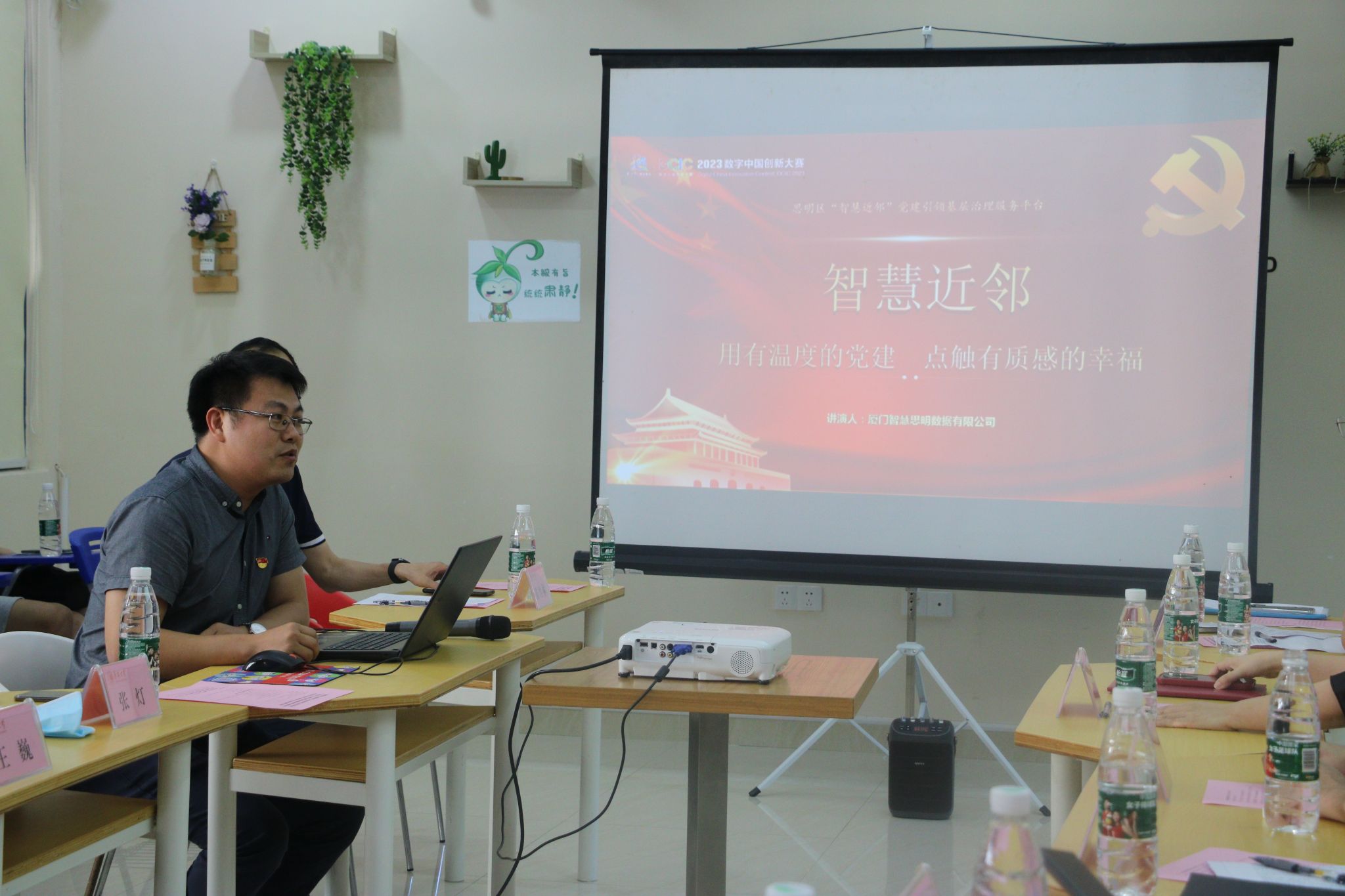 随后,洪洲培副总经理介绍了思明区“智慧近邻”党建引领基层治理服务平台的运营模式与成果。该项目在2023数字中国创新大赛数字党建赛道全国第12名,荣获优胜奖。“智慧近邻”平台拥有六大核心技术,探索新时代下基层治理的全场景应用,构筑“就近服务、就近参与、多元共治”的社会治理共同体,全面提升“近邻党建”引领社区治理效能,有效破解基层治理问题。