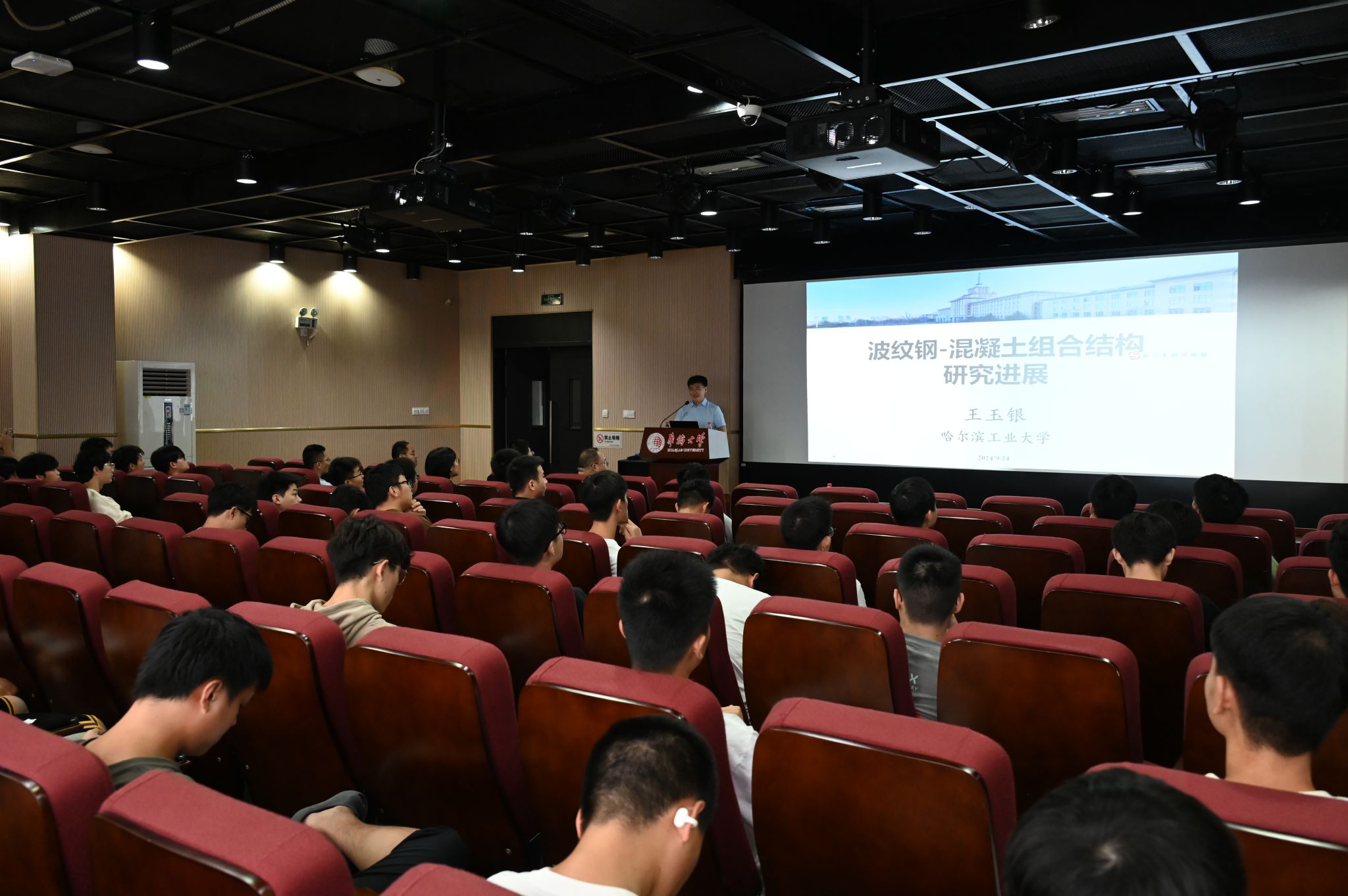 学科实验大楼510报告厅,以“波纹钢-混凝土组合拱结构研究进展”为题,作土木讲坛之166讲学术报告。报告会由院长刘阳教授主持,100余名师生出席参加。